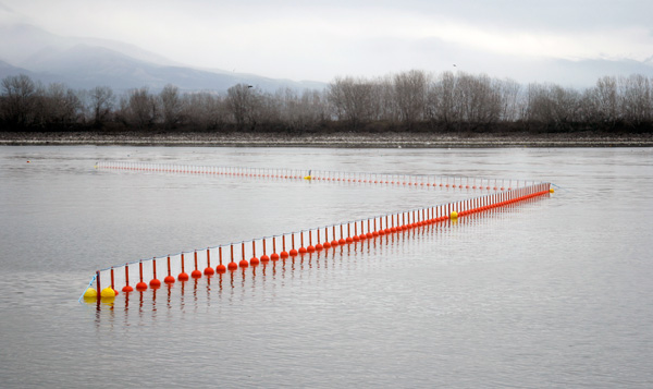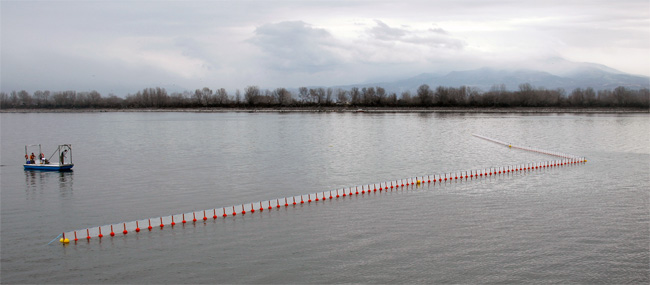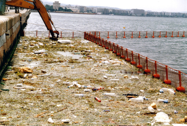 Συγκέντρωση των απορριμμάτων με δύο τμήματα πλωτού φράγματος